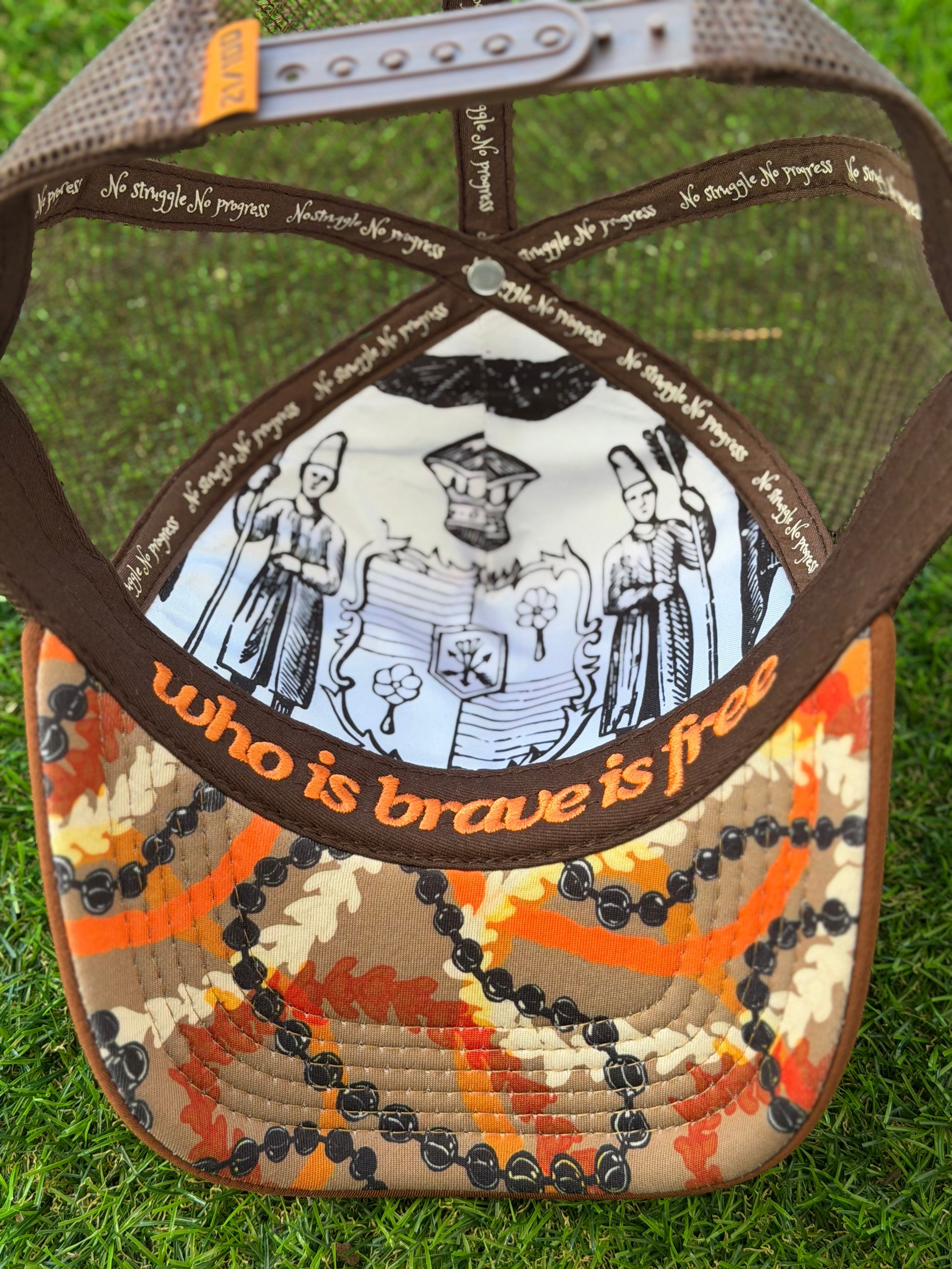 🔥 “Who is brave is free” embroidered across the brim